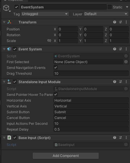 UI를 마우스로 클릭하거나 UI위에 마우스 커서를 올리는 등... 이러한 행동을 했을 때 이벤트가 발생하는 이유는 이벤트 시스템이라는 곳에서 처리를 하기 때문이다. UI를 생성하면 이벤트 시스템이 같이 생성된다.