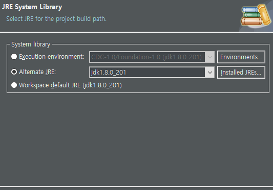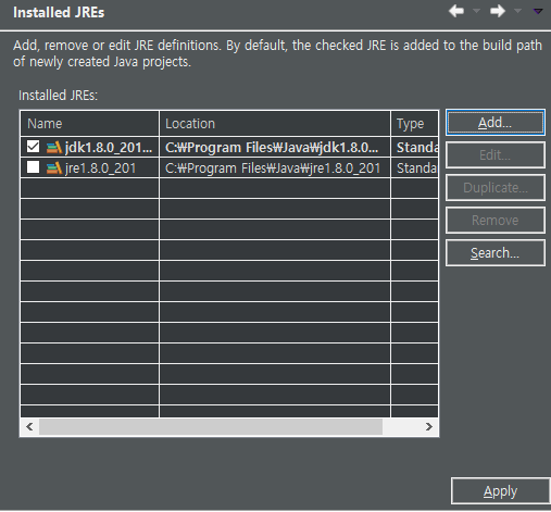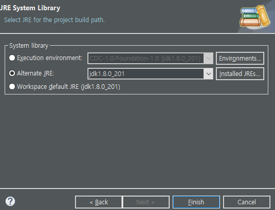 3.Alternate JRE 버튼 선택후 Installed JRE 클릭