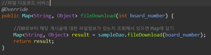 1.해당 게시글의 첨부파일 다운로드를 클릭시 DB에서 해당 첨부파일이 있는지 조회를 한후 있을 경우 Map으로 해당 첨부파일 정보를 저장를 한다