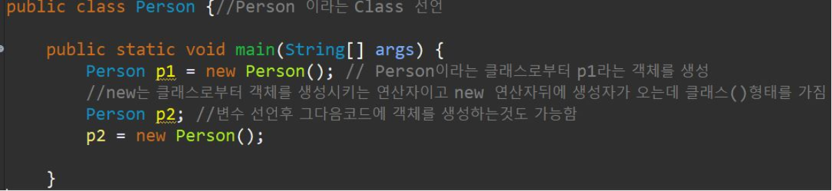 아래 코드를 통해 클래스 선언후 객체를 생성하는 방법을 알아보자